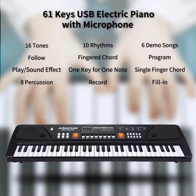 61 keys Electric Piano with microphone and charging cable