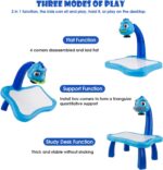 • Multifunction Drawing Projector for Kids: Projection and copy 4 in 1, can project, copy ,draw and listen to music powerful and interesting. The child smart projector sketcher desk is a creative enlightenment toy.